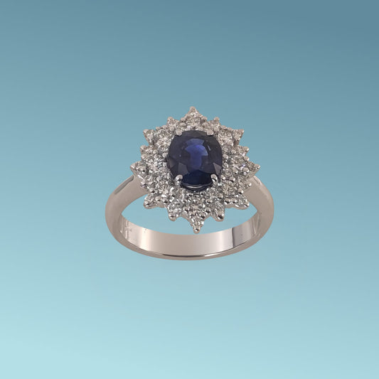 Anello in Oro con Zaffiro blu Ceylon e Diamanti