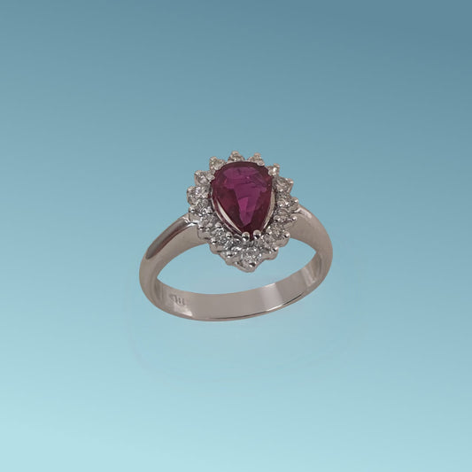 Anello in Oro con Rubino a Goccia e Diamanti